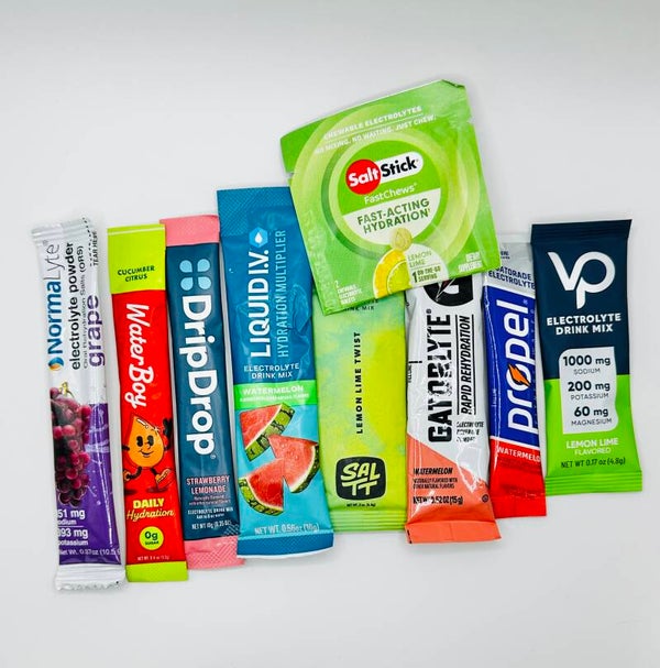 This bundle has a 30oz tumbler with straw and 4 Electrolyte packets. Consult a doctor before using any products you are unsure of. Flavors of items may vary.